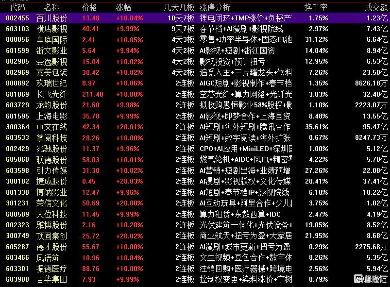 1、近日,Seedance2.0爆火出圈,ai应用成为最强主线,引爆传媒链。短剧、影视、数字阅读、AI营销等细分领域全面爆发。