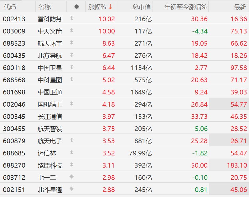 格隆汇3月2日|美以伊全面开战,刺激A股市场卫星导航股逆势走强,其中,雷科防务、中天火箭涨停,航天环宇涨超8%,北方导航、中国卫星涨超6%,中科星图涨5%,中国卫通、国机精工涨超4%,长江通信、航天智装、航天电子、迈信林、臻镭科技(维权)涨超3%。