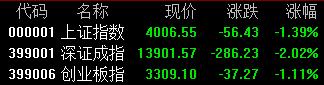 3月19日,A股三大指数集体下挫,沪指一度跌破4000点;截至收盘,沪指跌1.39%报4006点,深证成指跌2.02%,创业板指跌1.1%。全市场成交额2.13万亿元,较前一交易日增量662亿元,近5000股下跌。