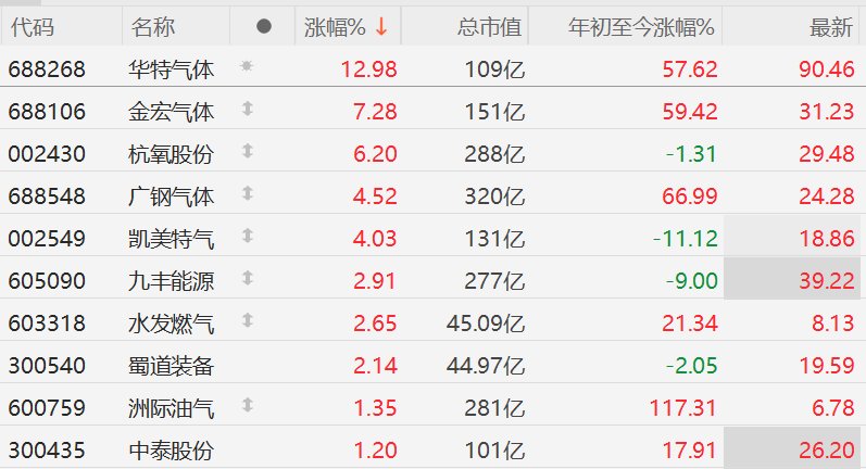 格隆汇3月23日|A股市场氦气概念股逆势上涨,其中,华特气体涨近13%,金宏气体涨超7%,杭氧股份涨超6%,广钢气体、凯美特气涨超4%。消息面上,霍尔木兹海峡航运受阻,已推动氦气价格明显走高。美国银行近期估计,根据不同市场情况,氦气现货价格最高已经上涨了大约40%。分析指出,在供应趋紧的情况下,对氦气有需求的关键行业往往更看重供应安全,而非价格,这也使得供应商更容易上调报价。