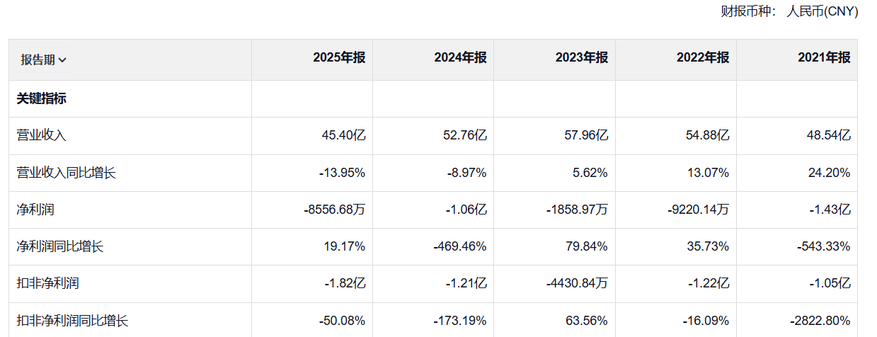 翻阅过往业绩,公司自2021年起净利润一直处于亏损状态,近五年总计亏损约4.45亿元。