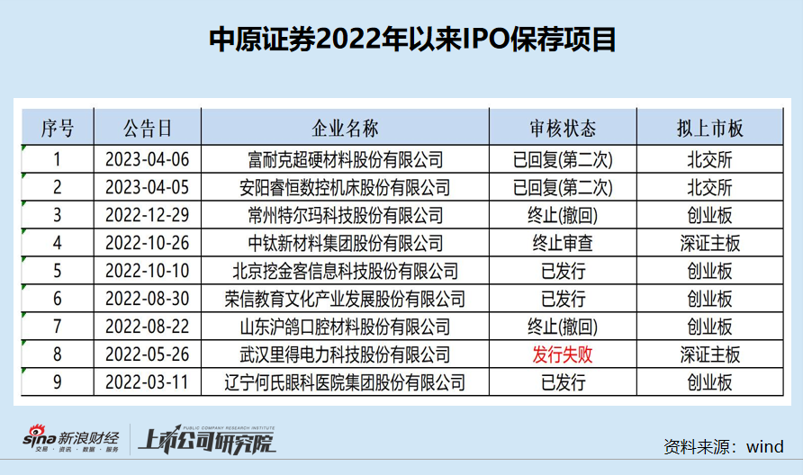 从2022年1月1日至今,中原证券已完结IPO项目为7家,失败4家,保荐项目失败率高达57%。