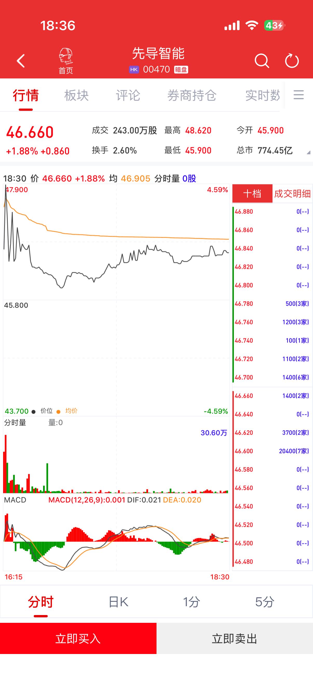 先导智能(00470)将于2月11日(星期三)在香港挂牌。截至收盘,利弗莫尔证券暗盘交易显示报价46.66港元,较招股价45.8港元涨1.88%,每手100股,不计手续费,每手赚86港元。