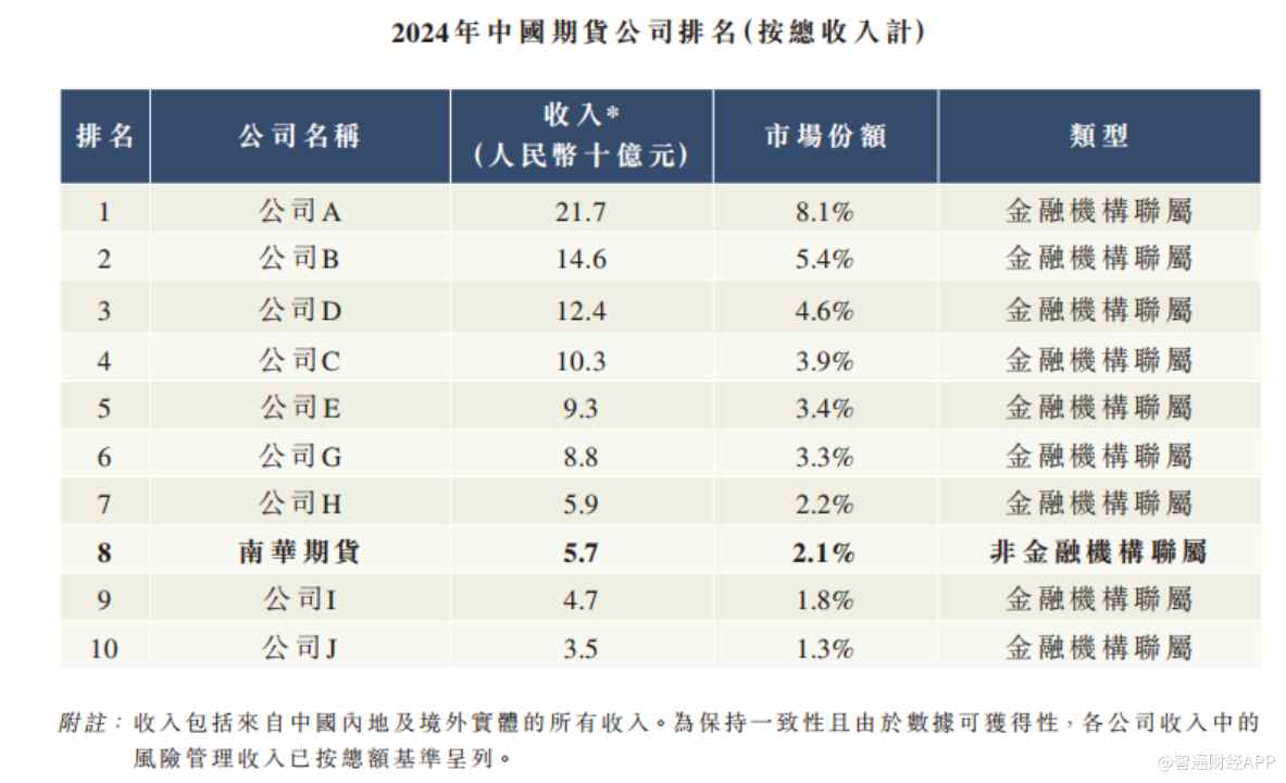 据弗若斯特沙利文报告,按2024年总收入计,公司在国内所有期货公司中排名第八,在非金融机构相关期货公司中排名第一。