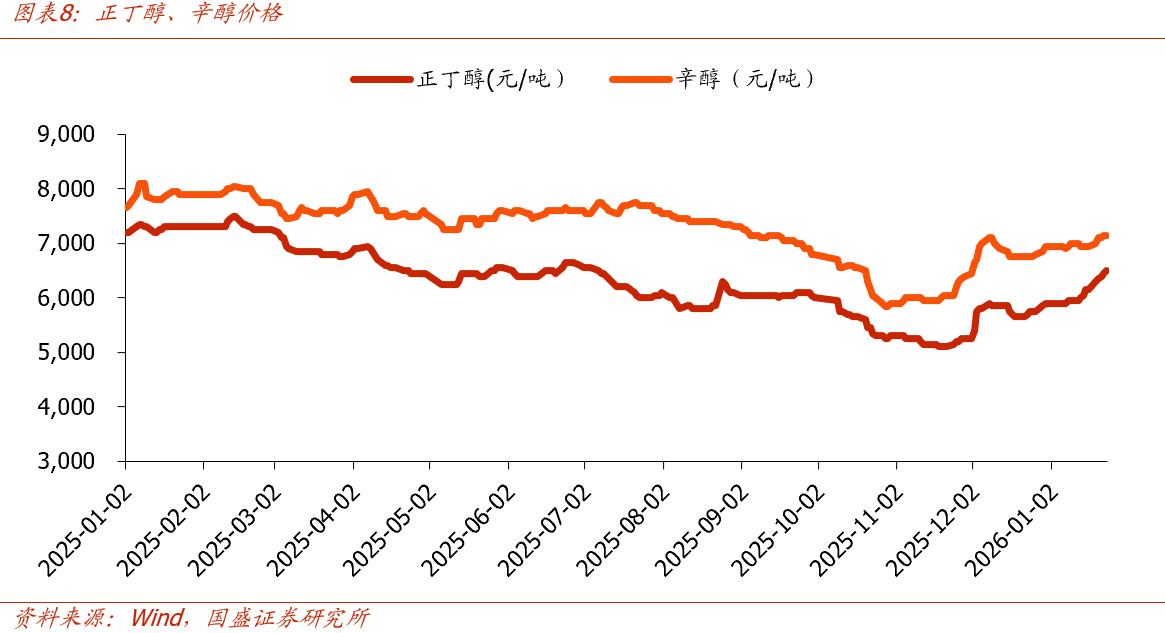 三维化学(002469.SZ):“反内卷”背景下现有化工品价格改善趋势有望延续,纤维素新产品利润释放在即。截止2024年底,公司醛/醇/酸/酯类产品产能分别为17/26/3/10万吨/年,是国内规模领先的正丙醇生产企业、丁辛醇残液回收企业和正戊醇销售企业。2025H1化工板块实现营业收入7.3亿元,占比58%;毛利率18.6%,毛利1.35亿元,占比54%。2025年下半年以来正丙醇等核心产品价格大幅下降预计致盈利有所承压,2026年有望迎来修复:1)近期现有核心化工品价格触底回升,“反内卷”背景下改善趋势有望延续:1月23日,正丙醇生意社基准价为5500元/吨,较本月初(5200元/吨)上涨5.8%,较近期低点(5150元/吨)上涨6.8%;正丁醇价格为6500元/吨,较本月初(5900元/吨)上涨10%,较25年12月低点(5250元/吨)上涨24%;辛醇价格为7150元/吨,较本月初(6950元/吨)上涨3%,较25年12月低点(6450元/吨)上涨11%。2)异辛酸及高端纤维素产线加快推进,利润释放在即:公司全力推进“醋酸丁酸纤维素产品优化提升技改项目”、“纤维素衍生物及其配套装置改造提升项目”进度,5万吨/年异辛酸、1.5万吨/年高端纤维素(醋酸纤维素5000吨/年、醋酸丙酸纤维素3000吨/年、醋酸丁酸纤维素5000吨/年、交联羧甲基纤维素钠2000吨/年)有望在26年陆续投产,高端纤维素产品预期盈利性优越,有望为实业板块打造新增长点。此外,公司工程板块新签订单同比高增(25Q1-3同增135%),在手订单储备充裕(25Q3末16亿),后续鲁油鲁炼项目与新疆煤化工等潜在订单有望进一步打开成长空间。公司在手现金充裕,2024年分红率高达99%,以2023-2024年平均分红率84%估算,2026年预期股息率约5%,具备较强投资吸引力。