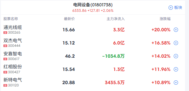 变压器、电网设备、特高压等电力概念集体走强,亿能电力、三变科技、双杰电气等多股涨停。