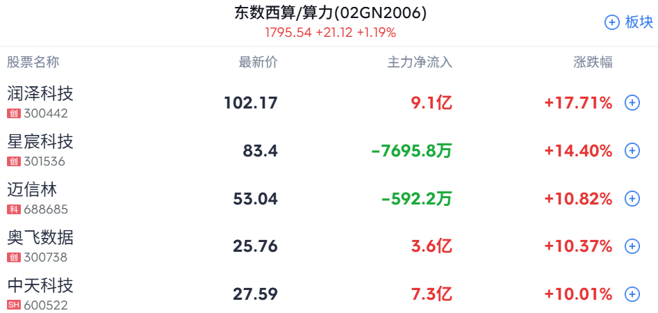 1、算力概念股集体走强