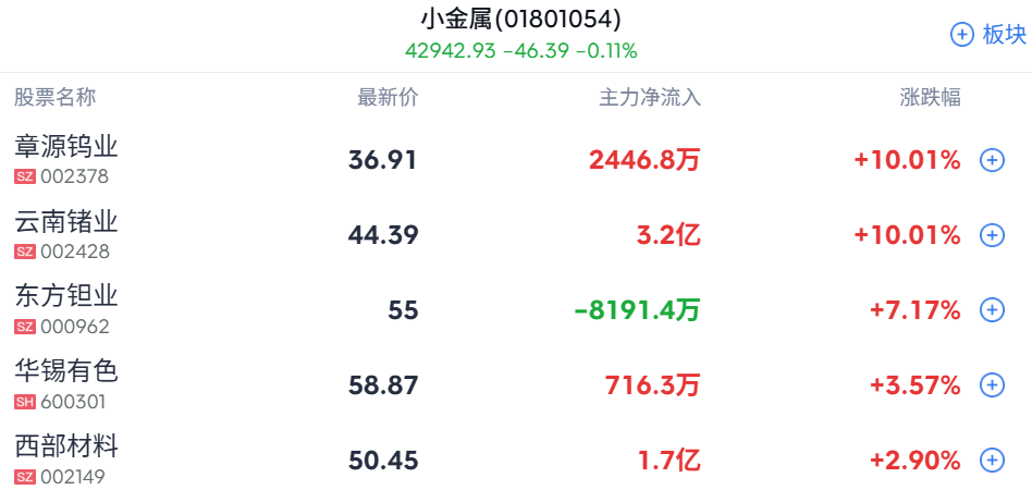 小金属概念表现活跃,云南锗业2连板,章源钨业涨停。