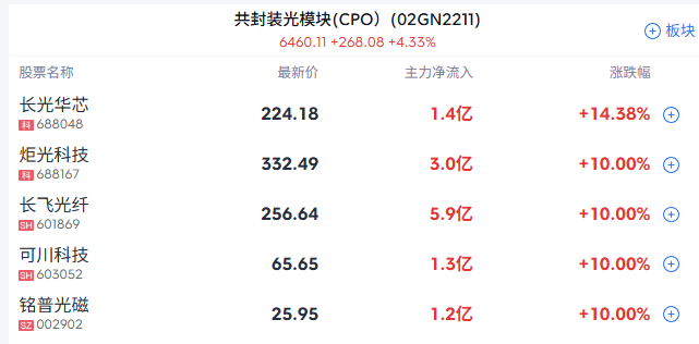 CPO概念表现活跃,铭普光磁、阿莱德、可川科技涨停。