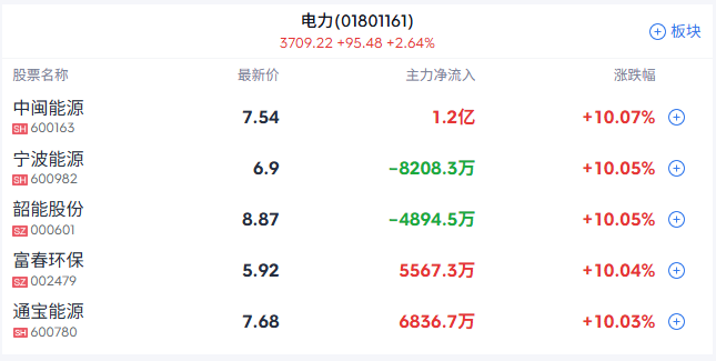 电力板块爆发,绿电概念领涨,十余只成分股涨停,华电辽能8连板,韶能股份6天5板,粤电力A走出6天4板。