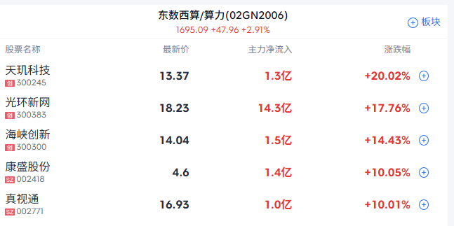 词元概念发酵,算力租赁概念多数走强,二六三、中嘉博创涨停。
