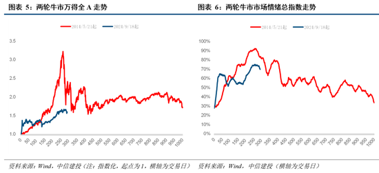 对比这两轮牛市,原因是这两轮牛市都是预期定价较为充分,所以关注情绪指标,跟踪牛市进展就更有必要。