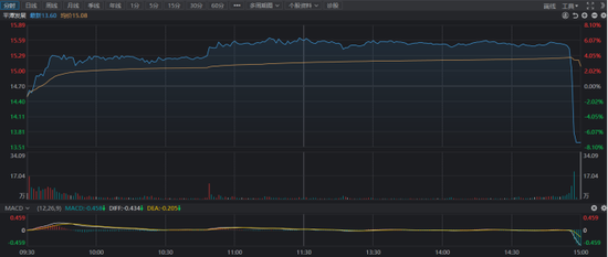 作为福建板块人气高标,平潭发展近期股价表现强势,其今日盘中涨幅一度达6.4%,股价触及15.66元,距离此前于12月16日录得的历史最高价15.97元仅有一步之遥。不过,就在即将收盘之际,平潭发展迎来大幅跳水,5分钟累计回撤近12个点,截至收盘,其今日跌幅近7.5%,股价回落至13.60元,同时也一举抹去周内大部分涨幅。