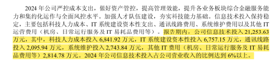 然而,与2023年相比,公司信息技术总投入略有下降。除IT系统建设与通讯线路投入小幅增长外,科技人力成本等多项支出均有所减少。