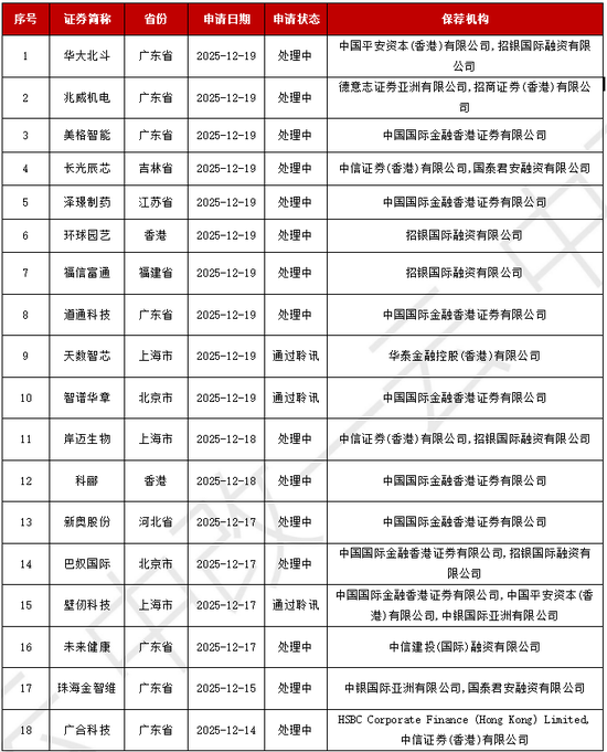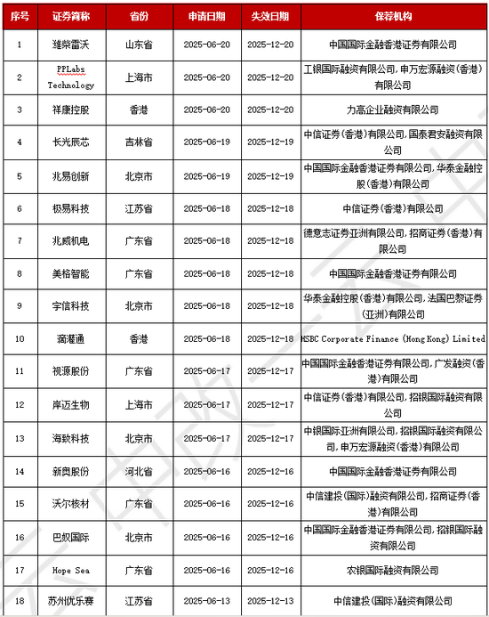 本周18家企业港交所递表