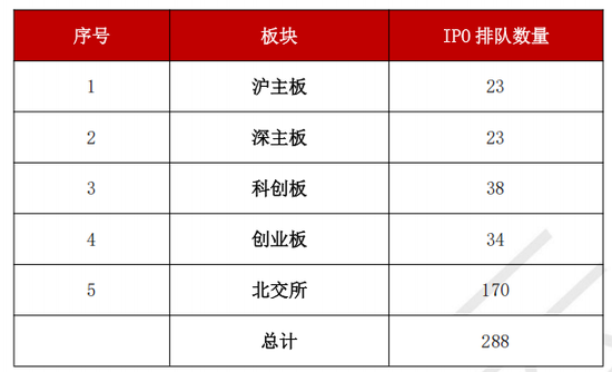 1最新IPO排队288家