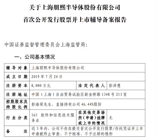 近日,证监会官网披露,上海朋熙半导体股份有限公司在上海证监局办理辅导备案登记,正式启动IPO进程,辅导机构为国泰海通证券股份有限公司。
