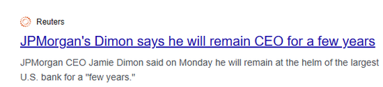 摩根大通戴蒙表示未来几年将继续出任CEO,福布斯估计其身家约28亿美元