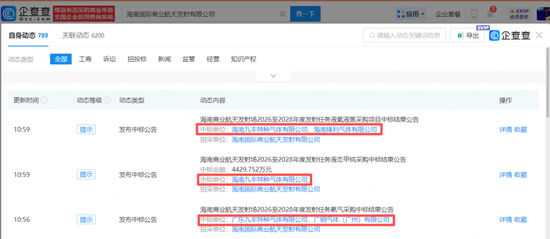 根据《海南商业航天发射场2026至2028年度发射任务氦气采购中标结果公告》,广钢气体(广州)有限公司中标标段1项目,中标金额达3267万元。