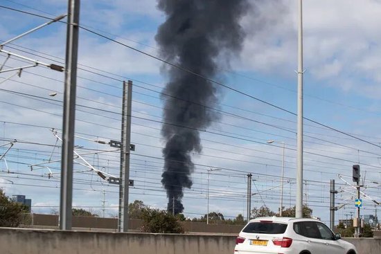 以色列特拉维夫拍摄的浓烟。 新华社记者陈君清摄