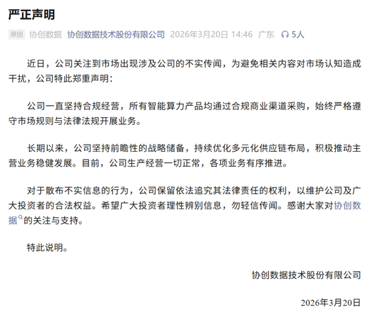 对此,协创数据表示,公司一直坚持合规经营,所有智能算力产品均通过合规商业渠道采购,始终严格遵守市场规则与法律法规开展业务。