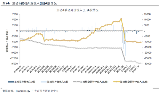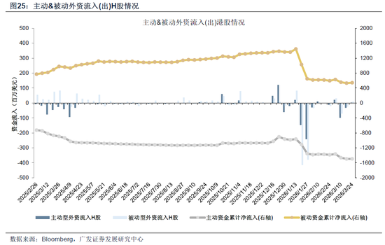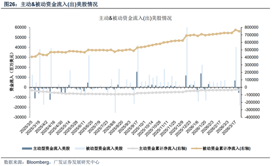 美股主被动资金转流出。截至本周三(3月18日—3月25日),美股主动资金净流出53.97亿美元,上周净流入68.43亿美元;被动资金净流出182.21亿美元,上周净流入402.89亿美元。