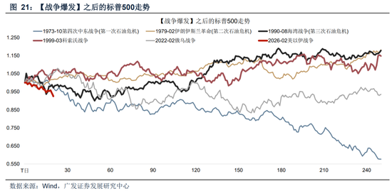 权益资产方面,复盘美股在几次战争危机之后的走势可以发现:(1)危机期间有超额收益的方向:一是战争催化的石油、贵金属、军工,二是避险的电信、烟草,三是有强产业趋势的方向,比如80年代前后的科技、90年代前后的消费和卫生保健、90年代末期的科技;(2)石油和天然气的超额收益,通常跟随油价见顶而见顶;(3)若油价脉冲之后较长时间维持高位,需进一步对通胀和需求的冲击程度,第一次石油危机是负面案例、第二次石油危机是正面案例;(4)若油价脉冲回落,则市场在短暂反应战争因素之后,通常会回到了原有的运行轨道中,甚至资金还会往景气更确定的方向集中,比如90年代初期的消费、90年代末期的科技。