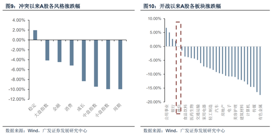 整体来看,俄乌时期市场的避险情绪释放得更为充分——无论这种情绪对应“滞胀”还是“衰退”,市场都没有去博弈战争能够快速结束,能源端充分定价通胀,科技、消费端充分定价衰退。而当前,权益资产仍在半信半疑地博弈冲突快速解决。这就是我们在第一部分所说的,倘若衰退预期被确定,等待的又是一次风险资产的抛售。