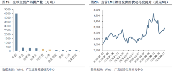 此外,中东最大的铝生产商阿联酋环球铝业位于阿布扎比哈利法经济区的塔维拉生产基地遭到伊朗导弹和无人机袭击,并遭受严重破坏,铝价或继续向上。中东地区的阿联酋、巴林是重要的产铝大国,阿联酋铝厂设施被破坏,将导致直接停产或减产;同时霍尔木兹海峡的停运,可能导致上游正负极原料进口以及下游原铝出口效率的降低。因此短期海外电解铝供给紧张情况或加剧,铝价上行空间将打开。