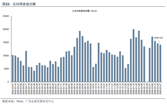 北向资金本周日均成交额收敛。本周(3月23日—3月27日)北向资金总成交金额为1.41万亿元,日均成交额为3522.99亿元,较上周日均成交金额减少139.13亿元。
