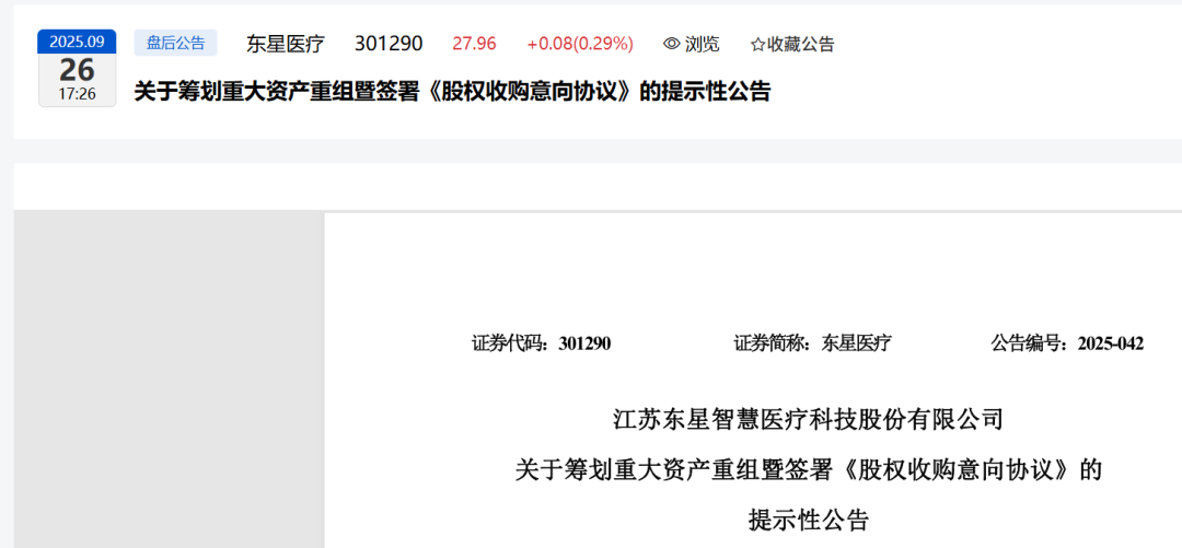 2025年9月26日,公司与武汉医佳宝全体股东签订了《股权收购意向协议》,具体内容详见本公告内容之“四、《股权收购意向协议》的主要内容”,最终收购股权比例、交易对方及交易价格尚需交易各方进一步协商后确定。
