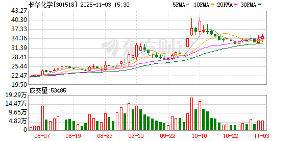 证券日报网讯 11月3日晚间,长华化学发布公告称,截至本公告披露日,公司通过回购专用证券账户以集中竞价交易方式累计回购公司股份1,039,718股,占公司目前总股本的0.74%。