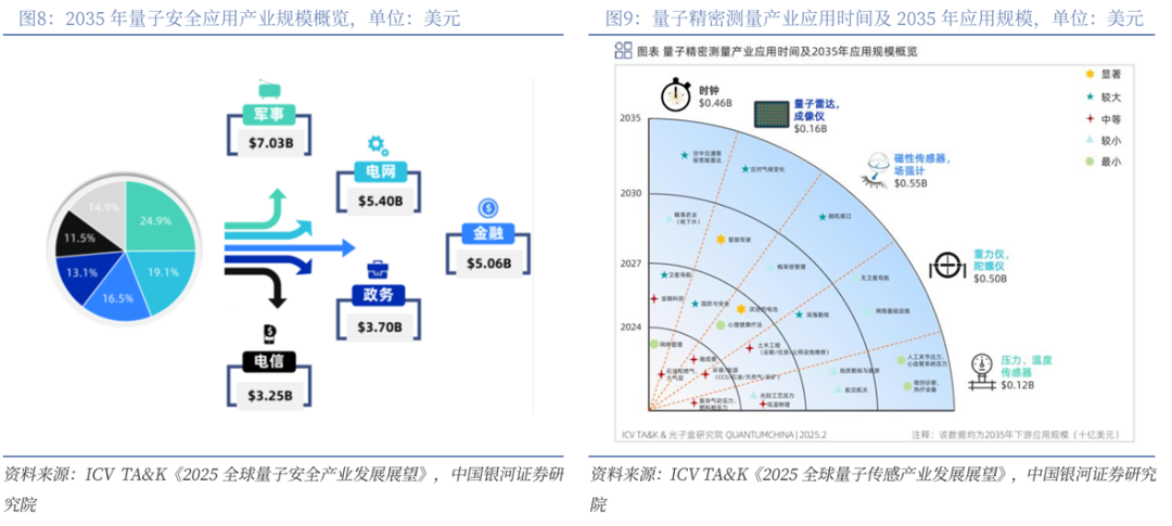 《中共中央关于制定国民经济和社会发展第十五个五年规划的建议》提出打造新兴支柱产业,加快新能源、新材料、航空航天、低空经济等战略性新兴产业集群发展,将催生数个万亿元级甚至更大规模的市场;《建议》还提出前瞻布局未来产业,推动量子科技、生物制造、氢能和核聚变能、脑机接口、具身智能、第六代移动通信等成为新的经济增长点,这些产业蓄势发力,未来10年将再造一个中国高技术产业。量子科技是基于量子力学原理发展起来的前沿科技,涵盖量子计算、量子通信和量子精密测量三大方向,代表着未来科技与产业变革的核心驱动力。其中,量子计算具备超越传统计算机的超强算力,可在新药研发、材料设计、金融建模等领域实现颠覆性突破。量子通信基于量子不可克隆原理,能提供理论上绝对安全的信息传输,是未来数字经济与国家信息安全的重要保障。量子精密测量则能突破经典测量极限,广泛应用于导航、能源、医疗等高精度需求场景。
