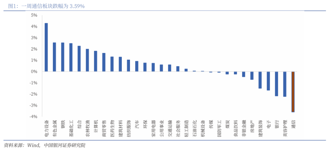 (一)一周通信板块跌幅为3.59%