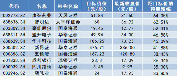 金融投资报记者注意到,在三季报发布后,不少公司的成长性获得机构肯定,机构给出的目标价也在调高,多只川股预期涨幅超过五成。