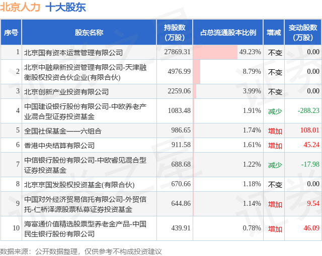 根据北京人力2025年三季报公布的十大股东详情如下: