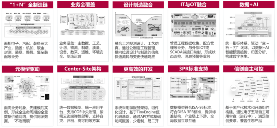 基于Center-Site架构,支持集团化、链主和产业集群统一管理,支持云边端弹性部署,解决自动化工厂边缘采集高频率、高稳定需求,iMOM聚焦泛电子、汽车及零部件、装备制造三大核心制造领域,为企业提供按模块场景选配式的解决方案,以模型驱动、数据驱动、AI驱动赋能行业智造转型升级。
