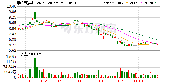 证券时报·数据宝统计显示,群兴玩具今日收盘价为6.32元,上涨0.48%,日换手率为2.86%,成交额为1.06亿元,全天主力资金净流出1112.11万元,近5日该股累计上涨0.32%,近5日资金合计净流出2153.94万元。