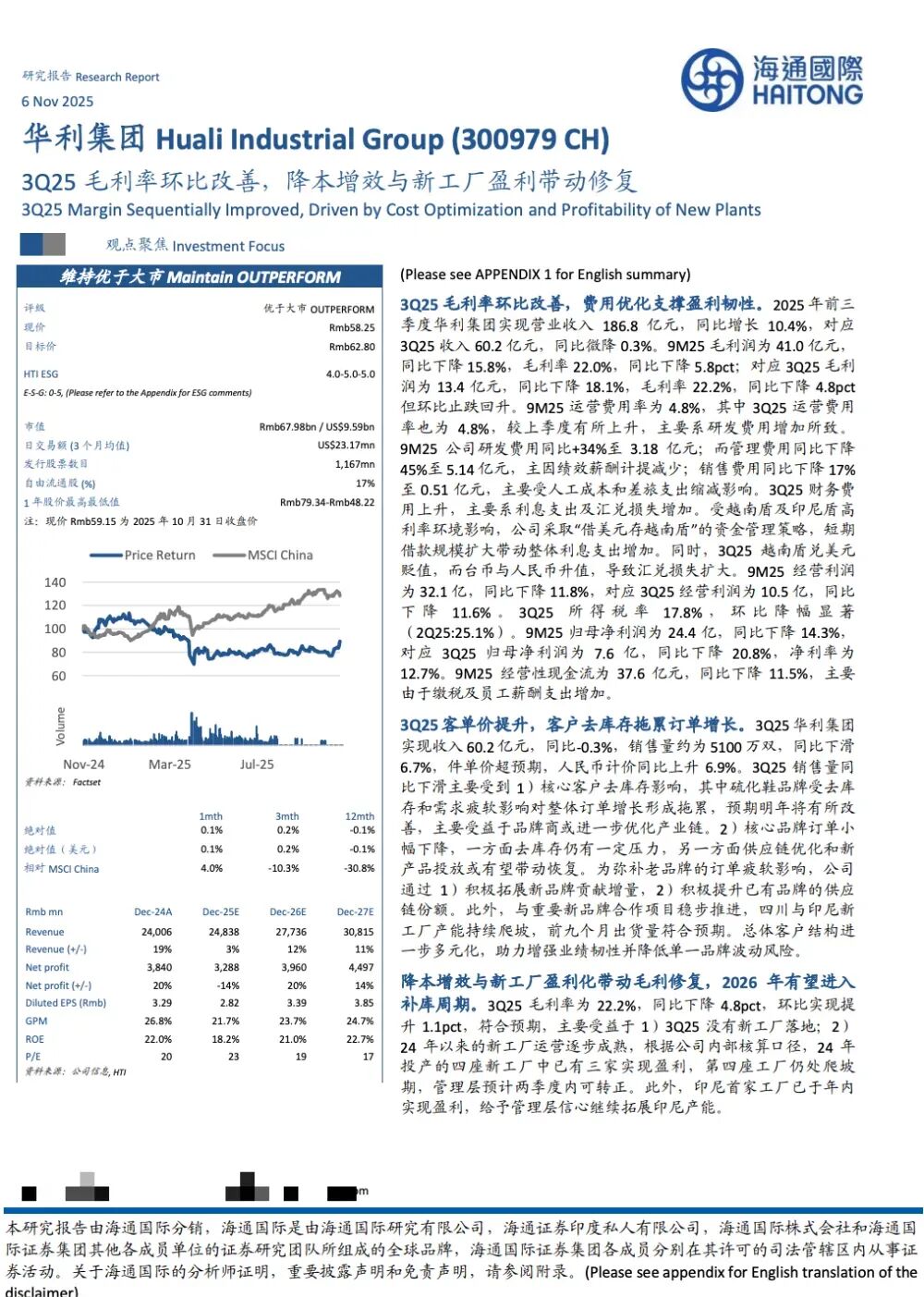 公司2025年第三季度毛利率环比有所改善,主要得益于新工厂运营的逐步成熟及降本增效措施的有效落实。2024年投产的4家运动鞋工厂中,已有3家(包括首家印尼工厂)实现内部核算盈利。