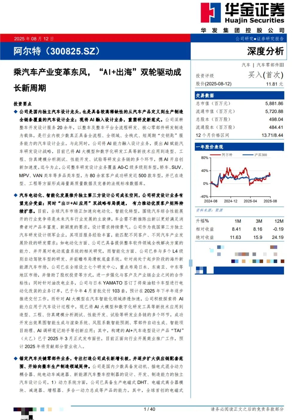阿尔特是亚洲最大的独立汽车设计公司及A股唯一汽车设计上市公司,具备全流程、全栈式整车研发及核心零部件研发制造能力。