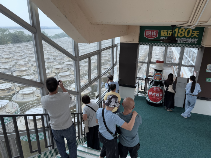 在上市公司董秘办人员的带领下,投资者依次探访了中炬高新厨邦酱油博览馆、生产车间和酱油晾晒场。在参观的过程中,讲解员详细介绍了酱油工艺的起源与企业发展历史,投资者还亲身参与“打酱油”互动,感受传统工艺的乐趣。参观结束后,中炬高新特别准备了酱油风味冰淇淋、卤蛋及凉菜,供投资者品鉴。
