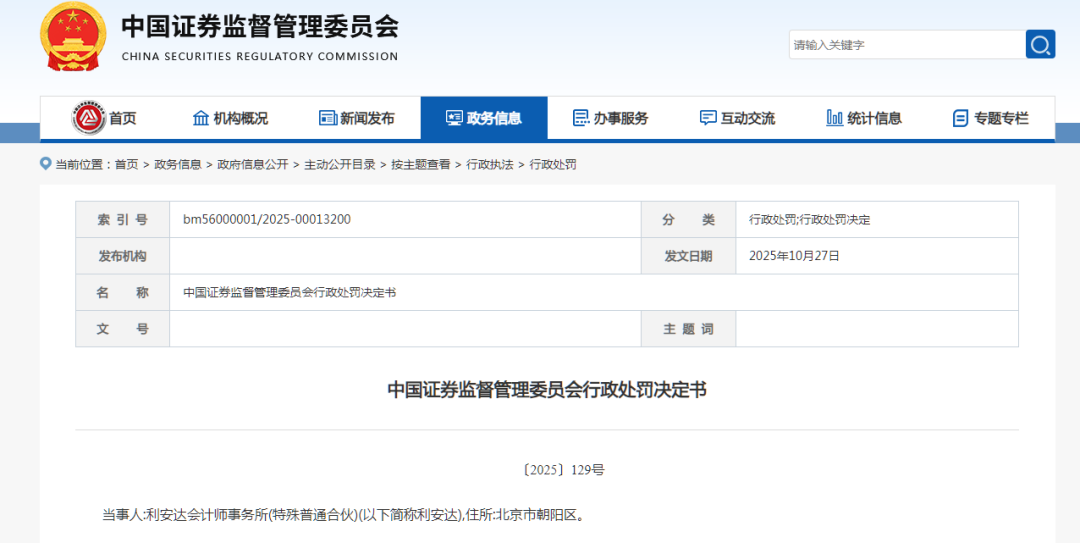 11月14日,因在广誉远(维权)2016年至2022年报审计项目中存在执业违法行为,中国证监会对利安达“没一罚四”合计罚没990万元,四名注册会计师合计被罚款165万元;同时在超华科技2019年至2022年报审计项目中亦存在未勤勉尽责的执业行为,中国证监会对利安达“没一罚三”合计罚没1,207万元,对三名注册会计师合计罚款120万元。