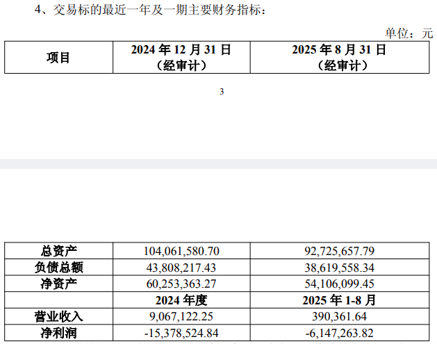 公告显示,同享科技成立于2024年1月,注册资本2000万元,但其2024年及2025年1月~8月的营业收入均为零。净利润持续为负,2024年度亏损4.99万元;2025年1月~8月,亏损进一步扩大至23.69万元。
