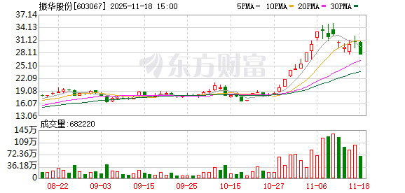 振华股份(603067)今日跌停,全天换手率9.60%,成交额19.62亿元,振幅12.02%。龙虎榜数据显示,沪股通净买入8292.76万元,营业部席位合计净卖出1.41亿元。