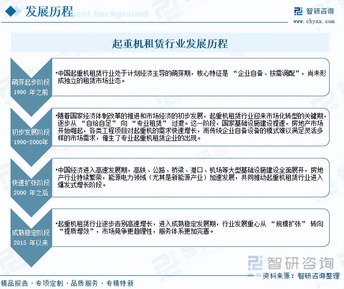 注:本文节选出自智研咨询发布的《研判2025!中国起重机租赁行业发展历程、产业链、发展现状及未来趋势分析:行业需求放缓,新领域拓展成复苏核心[图]》行业分析文章,如需获取行业文章全部内容,可进入智研咨询搜索查看。
