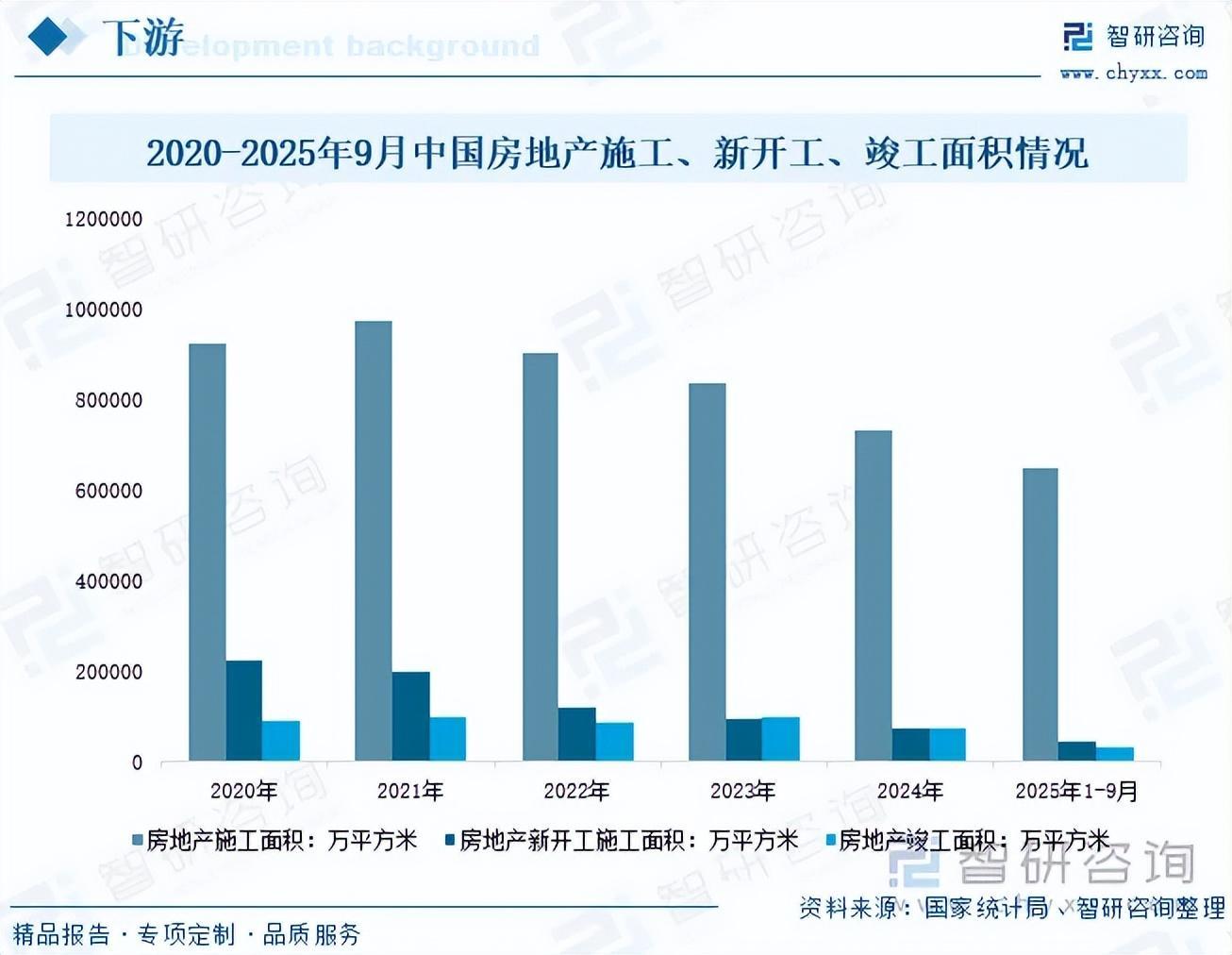 房地产行业是起重机租赁的主要市场之一,这是因为起重机造价较高,对于一些临时性、周期短的施工环节来说,租赁起重机可避免企业承担设备购置、维护等固定成本,降低资金压力。近年来,我国房地产行业进入存量时代,施工面积、新开工面积、竣工面积均存在一定程度的下降。根据国家统计局数据,2020-2024年中国房地产施工面积从926759.19万平方米降至733247.36万平方米;新开工面积从224433.13万平方米降至73892.84万平方米;竣工面积从91218.23万平方米降至73743.21万平方米。2025年1-9月中国房地产施工面积达到648579.75万平方米,同比下降9.4%;新开工面积45399.32万平方米,同比下降18.9%;竣工面积达到31128.88万平方米,同比下降15.3%。这意味着起重机租赁市场需求放缓。