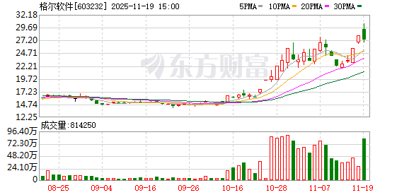 格尔软件(603232)今日下跌3.12%,全天换手率35.20%,成交额22.95亿元,振幅13.40%。龙虎榜数据显示,机构净卖出7468.99万元,营业部席位合计净买入4999.27万元。