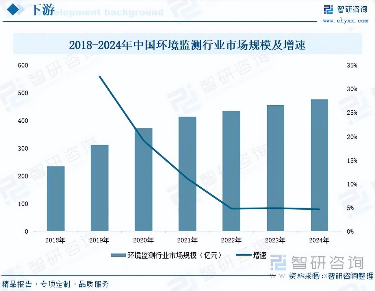 环境监测是酶标仪的主要应用领域,酶标仪可以检测水、空气、土壤中各种污染物质的含量和活性,如重金属、农药、化学物质等,用于环境污染监测和评估。近年来,中国环境监测市场持续展现出稳定增长的趋势,这得益于国家政策的鼎力支持、公众环保意识的不断提升以及环境监测技术的持续创新。政府通过出台一系列环境法规和政策,不仅强化了企业对污染物监测和报告的责任,还推动了环境监测技术的革新与普及,从而为环境监测行业创造了广阔的市场发展空间。同时,随着公众对绿色生态产品和服务需求的不断增长,环境检测在空气质量、水质安全、土壤污染防治等方面的市场需求也呈现出迅猛攀升的态势。数据显示,2018-2024年中国环境监测行业市场规模从236.41亿元增长至478.25亿元,年复合增长率为12.5%。