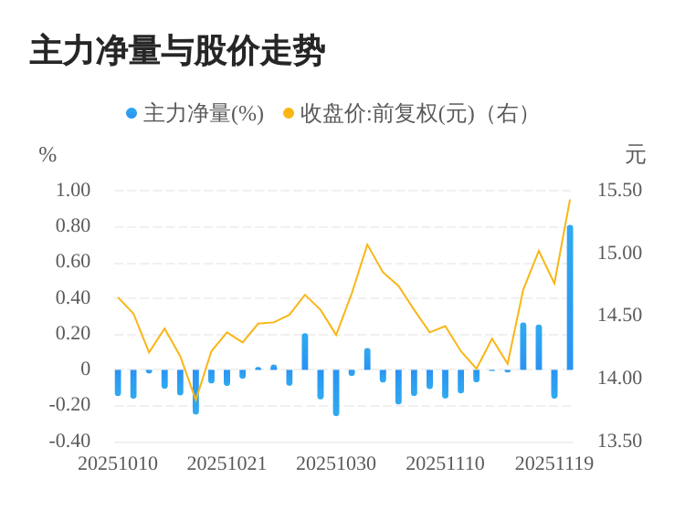 11月20日主力(dde大单净额)净流入3885.95万元,涨跌幅为4.54%,主力净量(dde大单净额/流通股)为0.81%,两市排名95/5168。