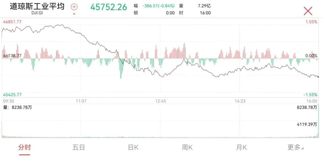 三大股指收盘也普跌,道琼斯指数跌0.84%,纳斯达克指数跌2.15%,标普指数跌1.55%。个股方面,英伟达跌超3%,特斯拉跌超2%,甲骨文跌超6%。